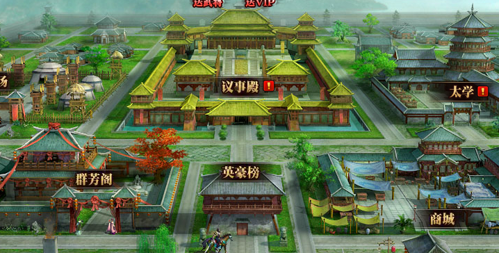 玩家可通过主城场景上方的议事殿建筑进入议事殿