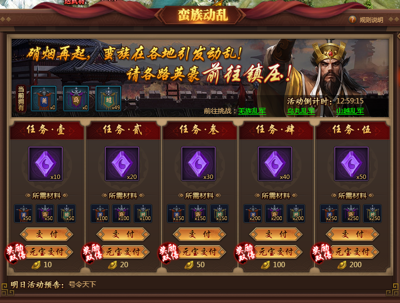 活动时间内会出现三支不同的部队,前往击杀会掉落不同的材料。
