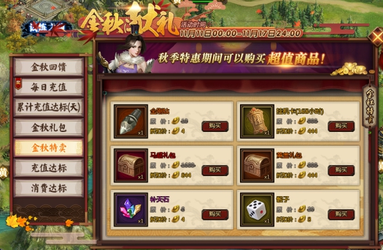 l 金秋特会期间可购买超值商品,具体商品折扣情况: