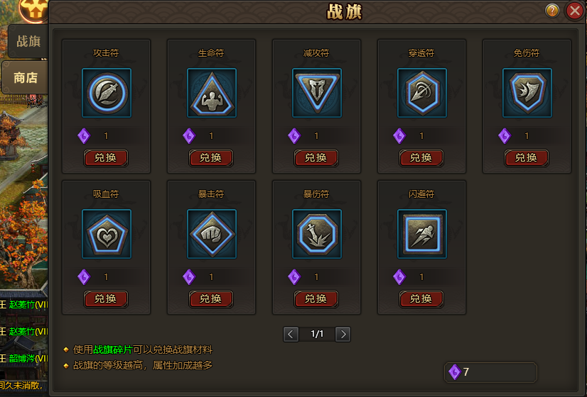 升级战旗中的能力需要消耗对应的能力符,九种能力符均可在战旗商店中使用战旗碎片直接兑换,战旗碎片则需要通过各种活动或任务来获取。赶紧开始打造自己的战旗,获得更加强大的能力吧!