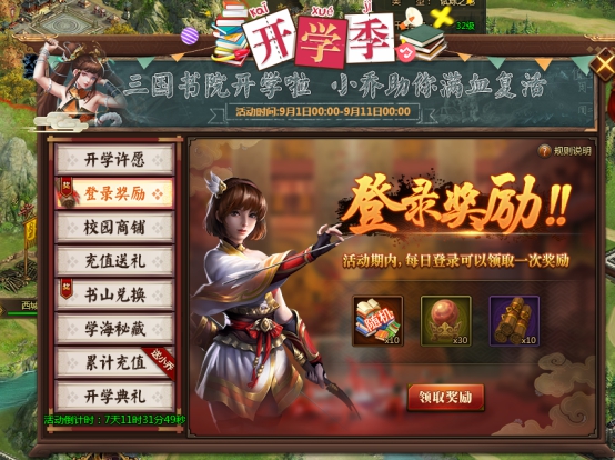 活动开启时间: 2018年9月1日0:00——2018年9月11日0:00,持续时间为10天(新服7日开服活动结束后可见)
