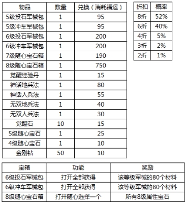 l 活动期间,可使用喜运进行道具兑换,兑换时有几率触发随机折扣;