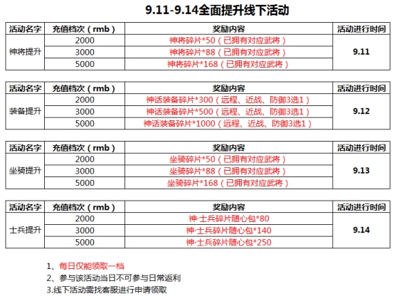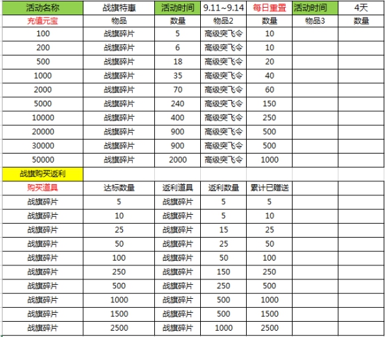 1.活动期间,每日累积充值达标可获得战旗碎片奖励;