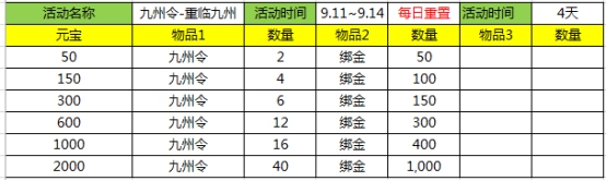 【活动三】重临九州(9.11-9.12)
