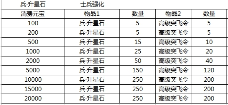 1.活动期间,每日累积消费达标可获得兵升星石和高级突飞令奖励。