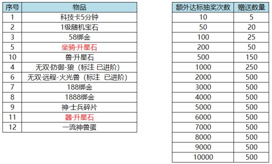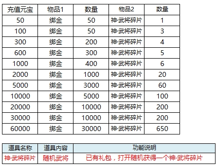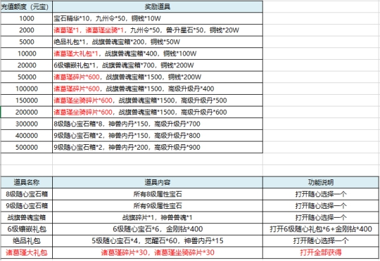 l 活动期间,充值达标即可领取对应奖励。具体对应档次奖励情况: