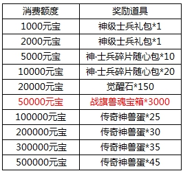 l 活动期间,玩家消费达标即可领取对应档次奖励。具体对应档次奖励情况: