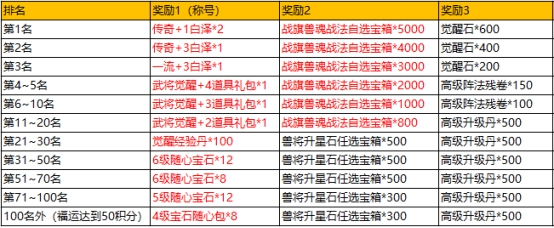l 具体排名奖励和好运分区如下: