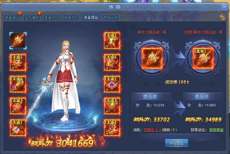装备升阶材料每提升一阶可以获得大量的属性战力加成;