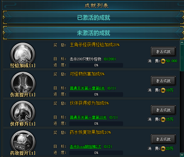 成长成就记录玩家每时每刻的成长,和玩家挑战自我极限的成果战士