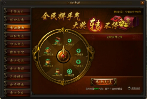 活动期间,充值并消费一定元宝即可使用幸运转盘,获得大量霸业玉道具,使用霸业玉后即可前往霸业商城内购买珍稀道具,精彩不容错过。