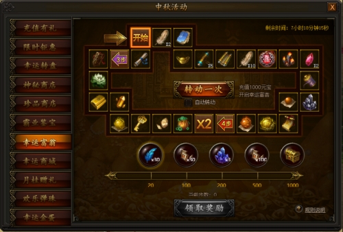 活动期间,充值一定元宝即可参与幸运大富翁,获得丢骰子次数,转动骰子即可获得踩中格子上的豪华奖励,多次参与累计步数,更有机会得到时装宝箱和极品转生装备奖励!