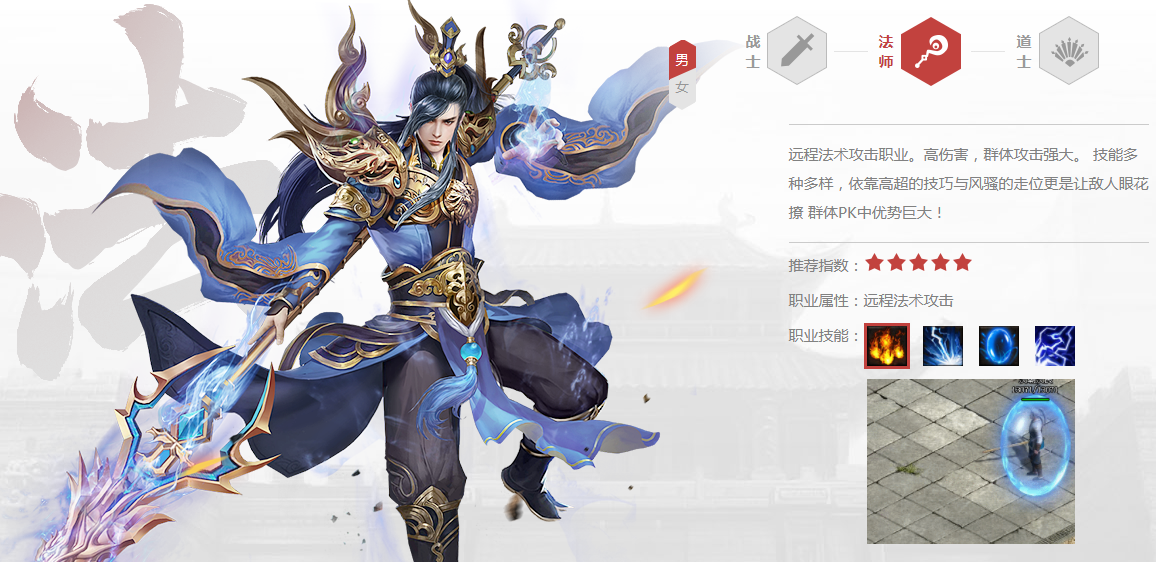 最后就是法师职业,在很多游戏中法师都被尊称为法爷,因为在游戏中法师往往就是高输出高爆发最鲜明的代表,要是看你不顺眼随便甩你几个法术,就让你的血条见底了。同样的在《传奇世界网页版》中法师的攻击力也是最为强大的。尤其是在前中期法师对于防御不高的战士,脆皮的道士都是秒杀级别的。而且全身的AOE令法师刷怪打BOSS的速度非常的快,在战士还在哼哧哼哧清小怪的时候,法师早就把地图都清完了。另外法师的魔法盾也是一个很令人头疼的技能,一个高等级的魔法盾可以为法师吸收高额的伤害,让自己没有这么简单就被秒掉。在前中期玩家的攻击力少有能直接秒杀法师的,所以等你能把法师血量打下来的时候,你差不多也已经死了。
