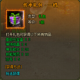 传承礼包展示: