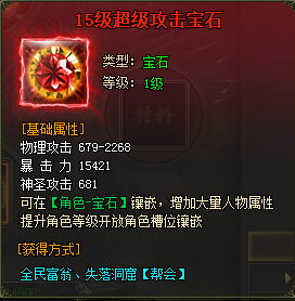 每种宝石一共分为15级,等级越高的宝石,加成的属性越多。宝石镶嵌成功后,需要穿戴对应位置的装备,宝石属性和宝石套装属性才会生效。