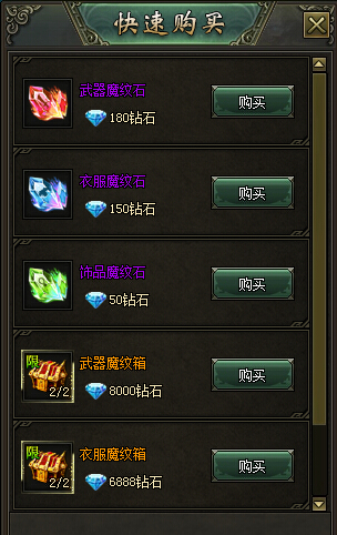 魔纹石获取途径:商城购买和参与荣耀训练场活动