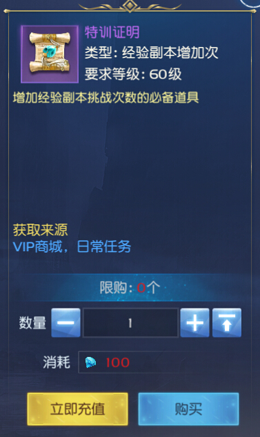6.玩家可以使用特训证明进行充值关卡
