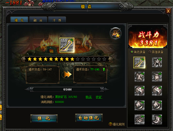 3.强化消耗黑铁矿石和铜钱,黑铁矿石通过挖矿、商城购买和行会秘境获得;