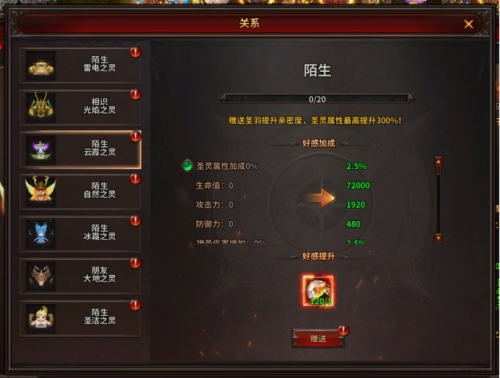 (4)可通过给圣灵之子赠送礼物,提高圣灵好感度,获得额外的属性加成