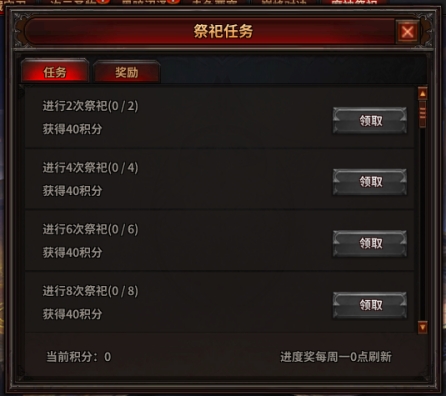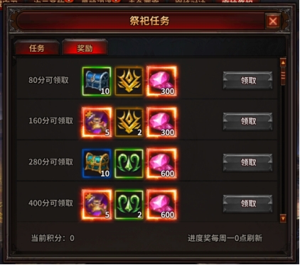 (1) 魔神祭祀新增每周任务及每周奖励,每周一0点刷新。完成任务可获得大量奖励