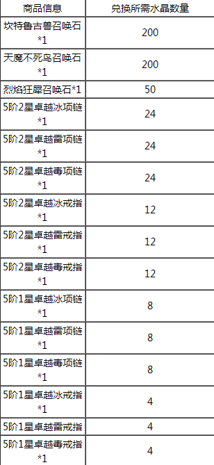 4. 【红龙秘宝】奖池、【水晶商店】商品更新信息公示