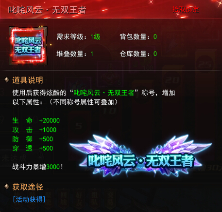 第30天:金币*100、绝版称号-天空之剑·无双王者*1