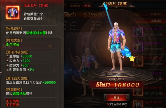 (2)泳池派对(衣服):激活后立即提升至少160000战力!