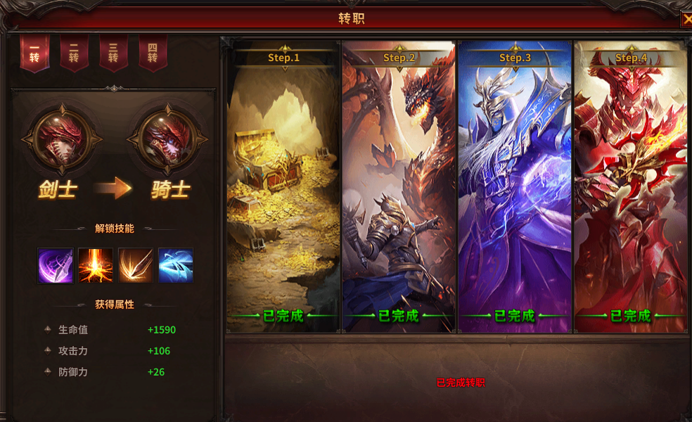 转职之后,玩家将进阶至全新的职业,可学习更强大的技能,并且大幅提升自身属性。