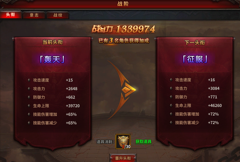 3、通关副本可获得大量战阶材料并且解锁战阶头衔