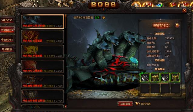 玩家击杀BOSS 可以获得卓越装备、珍贵材料、海量经验。BOSS里包含VIPBOSS、世界BOSS、中立BOSS。