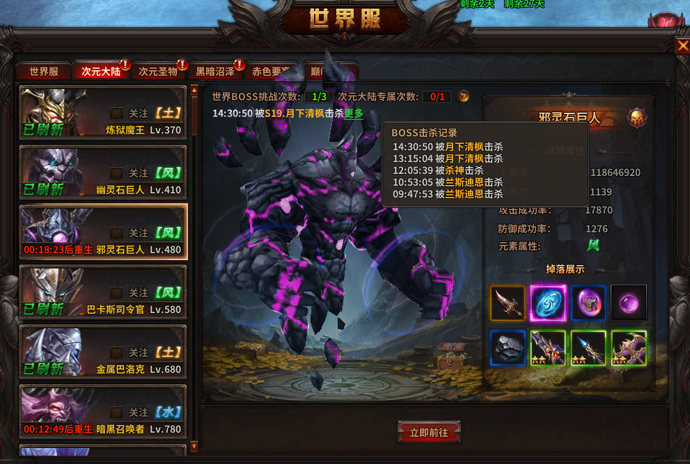 例如,从装备上克制BOSS的元素属性,玩家可以穿戴元素装备,来提高对BOSS的伤害;需要注意,在次元大陆讨伐BOSS,BOSS归属次数与世界BOSS共用,达到一定次数上限后,玩家便无法对BOSS造成伤害。每日0点重置归属次数,玩家需要合理利用讨伐机会。