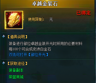 其实卓越金装石的获得方式还是很多的,并不像说明上的只有那么两种获得方式,以上的方式都可以获得卓越金装石