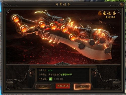 任务也比较简单,消耗绑定金币刷到10星,点击领取任务按钮,就可以自动传送到打怪地点。之后挂机自动完成任务就好,经验到手,简单快捷。