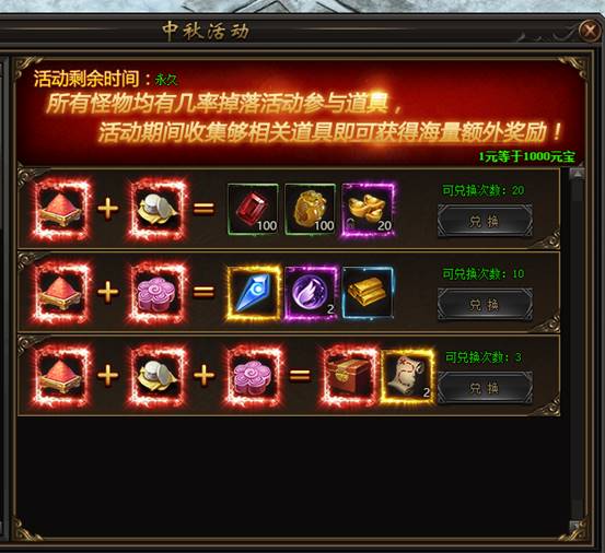 2. 中秋极品兑换(活动期间所有怪物均有掉落)
