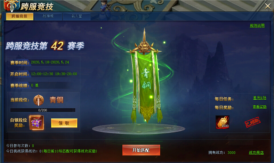 3.每日前10场匹配可获得战功,胜场战功翻倍