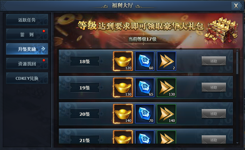 3、升级奖励