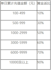 单日累计充值金额(元) 黄金返比