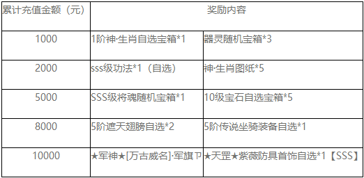 1.达到相应档位就可申请奖励,(例如充值2000元可以领取2000元及以下档位奖励)
