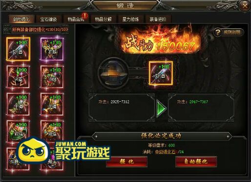 3.强化必定成功,强化消耗随着等级提升而提升