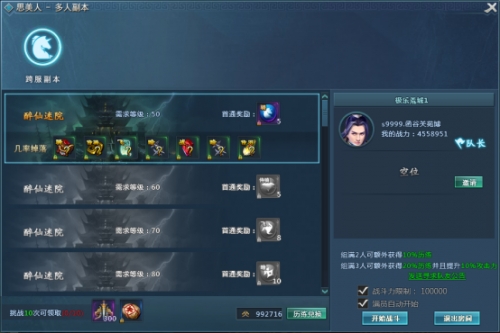 一、 玩家达到50级时可开启多人副本活动,点击主界面右上方多人副本图标则进入多人副本界面。