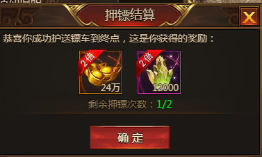双倍押镖顾名思义就是在押镖活动中可以获得双倍的奖励,每天开启两轮,分别是11:30-12:00,以及19:00-19:30。