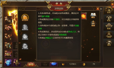 特戒共有4种,分别有破军特戒、麻痹特戒、生命特戒、护身特戒。每种特戒都有各自的效果。
