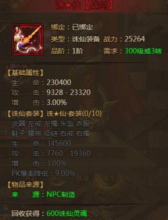 游戏要想混的好,神装一件不能少!在特玩《盛世遮天》里,诛仙装备属于比较难获取的一类神装,玩家要想获得各种诛仙装备,比较快捷的方法,就是直接在神龙宝藏内进行挖宝,会有一定几率挖出诛仙装备。也可以收集诛仙灵魂的材料和元宝,然后进入合成系统里,可以合成各种诛仙装备。诛仙灵魂可以通过逆魔古阵来获得的,或者回收多余的诛仙装备,也能获得一些诛仙灵魂。玩家可以利用诛仙灵魂,对诛仙装备进行升阶,来提升诛仙装备的属性效果。玩家佩戴各种诛仙装备,可获得一些攻击、防御的属性。当玩家身上佩戴齐指定件数的诛仙装备,还能激活套装效果活动生命、攻击、增伤、PK爆率降低的套装属性。