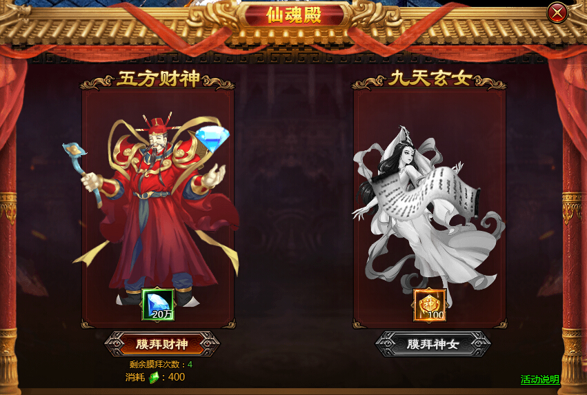 4.神女需要玩家达到vip可膜拜,可获得大量神魂
