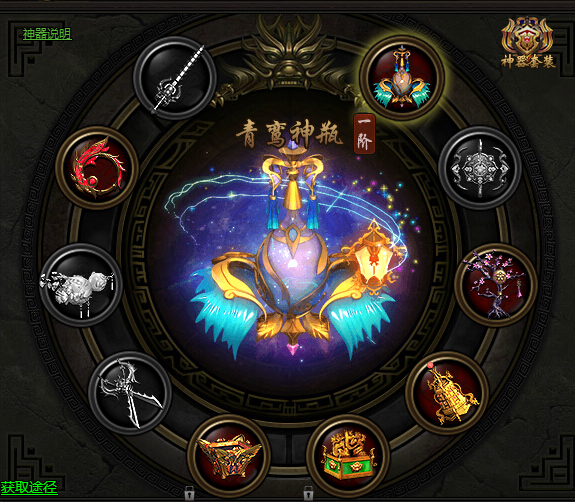 神器打造:只有神器锻造师可以打造,神器各大主城都有,快去寻找吧!打造神器需要三件件相同的神器+元宝合成,向着神王巅峰前进吧