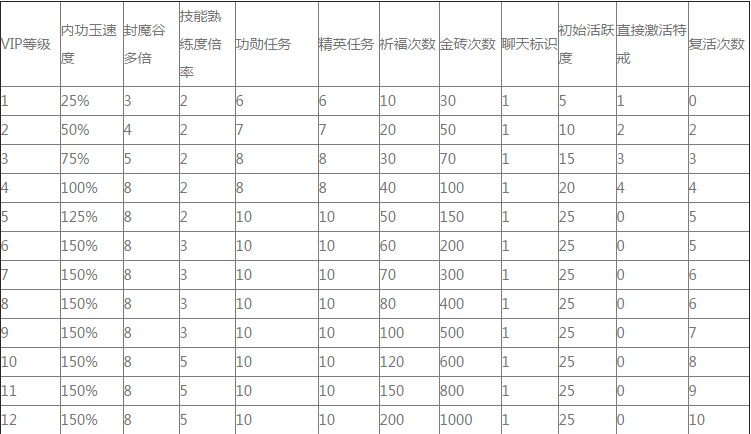 特玩屠龙战神中VIP给玩家提供了许多方便快捷的功能,提升VIP等级还有大量的礼包道具赠送,那么屠龙战神每级VIP需要多少钱呢,每级VIP能获得什么道具呢,下面的表格都有很详细的说明!