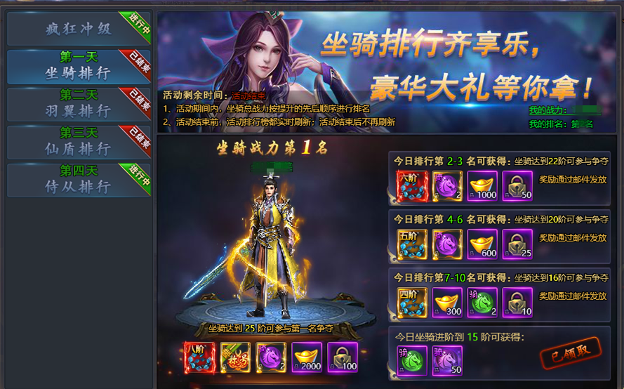 【坐骑排行】 开服第一天活动