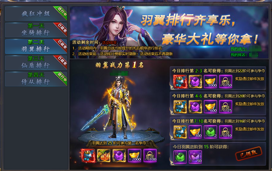 【羽翼排行 】开服第二天活动