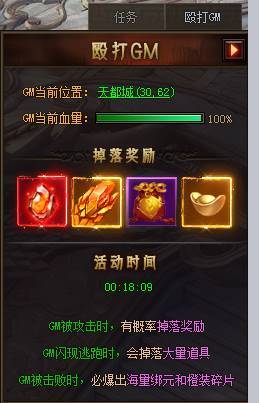 2、GM每一次被攻击都有概率掉落大量的道具和材料奖励供玩家拾取