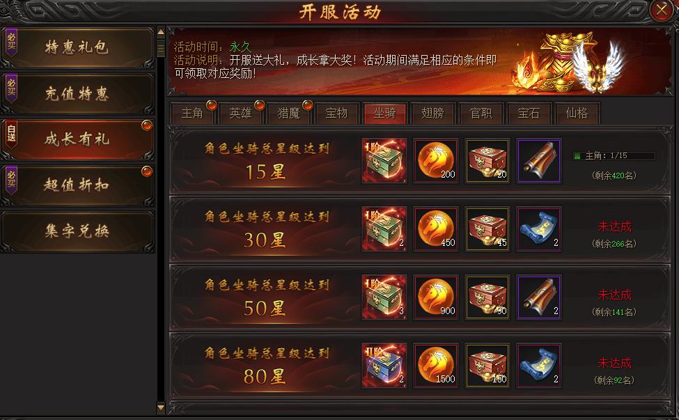 说明:活动期间坐骑等阶满足条件即可领取大量奖励